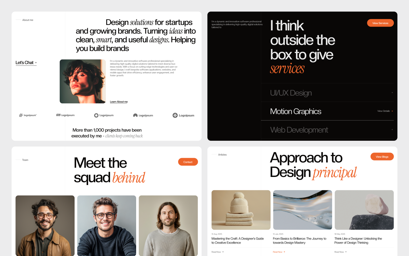 Each layout is built around how clients evaluate agencies in real life, helping you present your expertise, highlight results, and reduce friction from first impression to final contact.