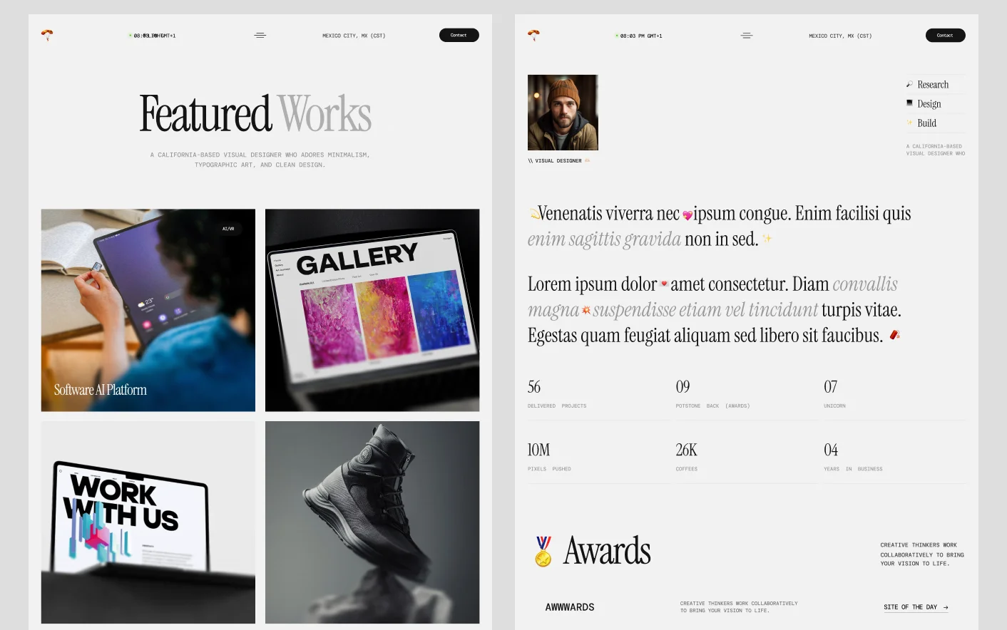 Alexjorgiya is a modern designer portfolio website template crafted for creative professionals who want to present their work with clarity and confidence. Built for Webflow and Framer, it provides a clean and professional foundation to showcase projects, services, and achievements in a structured way.