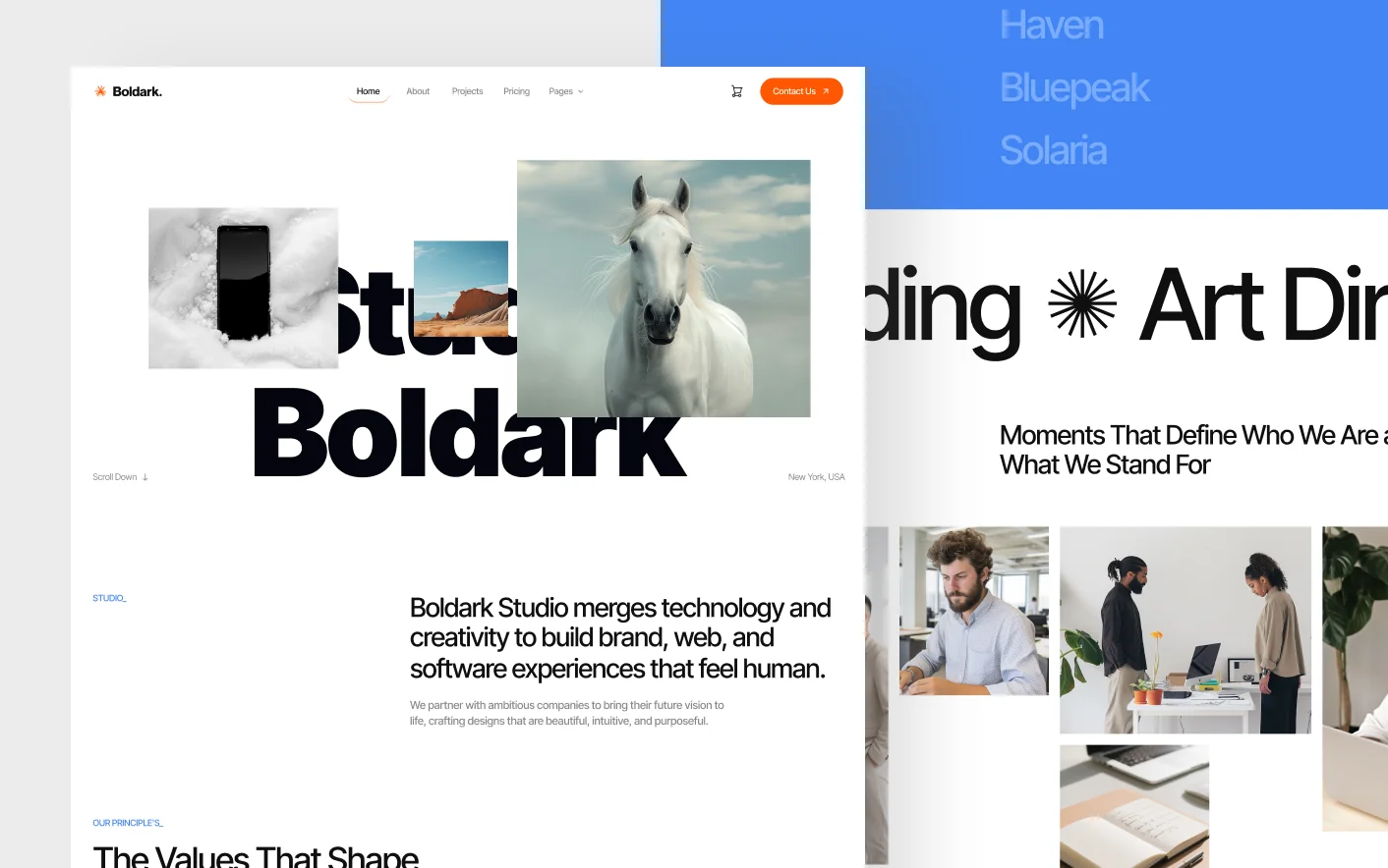 Boldark is a modern Portfolio and Agency website template built for creative studios, freelancers, and digital teams. It provides a strong and confident foundation to showcase projects, services, and brand identity with clarity.