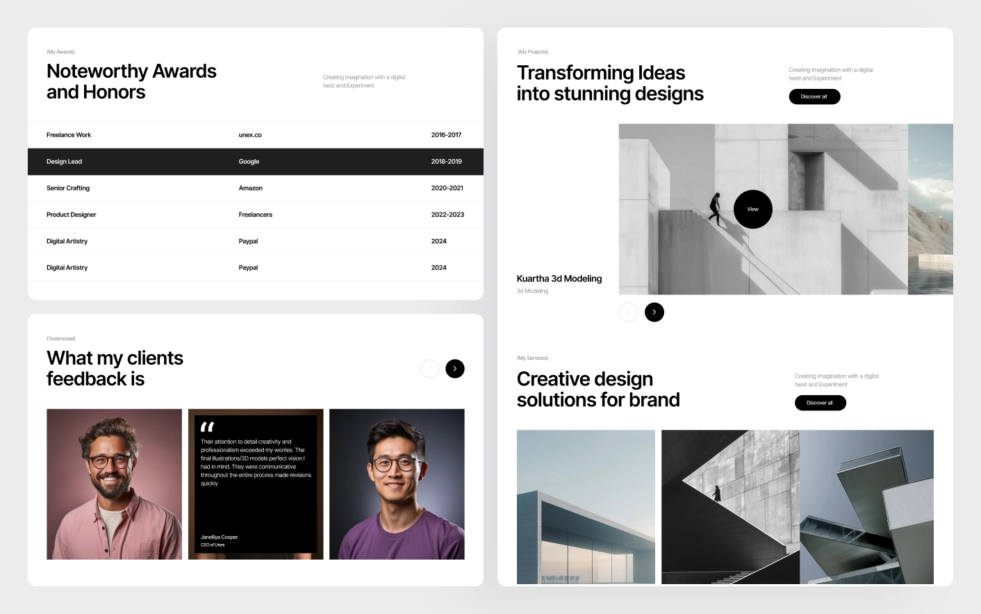 Every page is structured to highlight projects, services, and creative achievements in a way that feels organized and professional. This helps artists communicate their value clearly while making it easier for clients to understand their work and start collaborations.