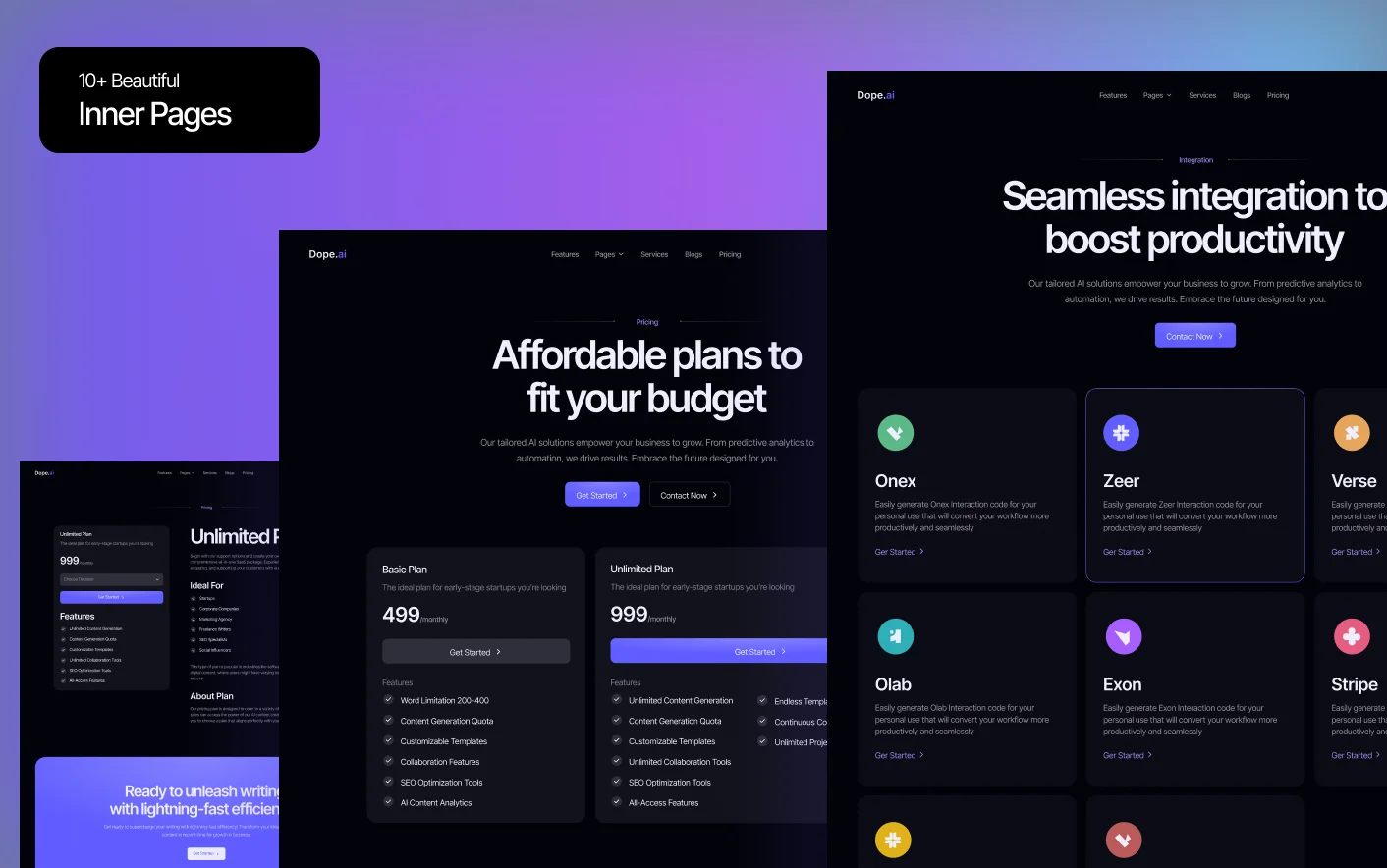 Dope.ai is a modern AI SaaS website template designed for startups building AI writing tools and content driven platforms. It provides a clean and professional foundation to present your product clearly while helping visitors understand the value of your AI solution.