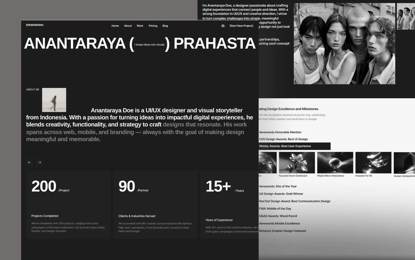 Erontaraya follows proven portfolio and agency design principles used by successful creative brands. Its structured layout, thoughtful content flow, and balanced visual elements guide visitors from first impression to inquiry.