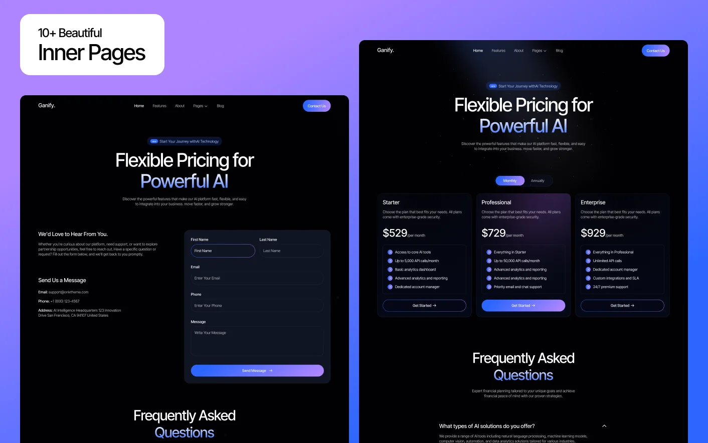 Ganify follows proven SaaS website structures commonly used by successful technology companies. Its organized layout and clear content flow help visitors quickly understand what your product does and why it matters.