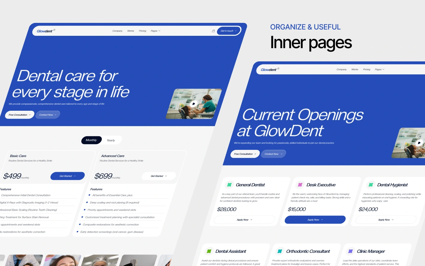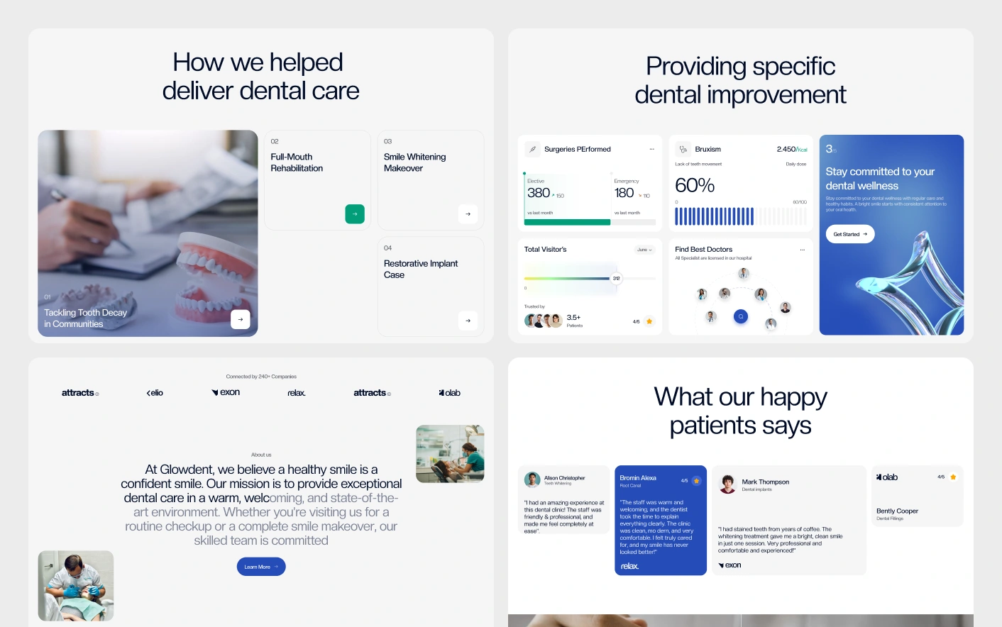 Glowdent follows proven healthcare website structures used by modern clinics and medical providers. Its clean layout, organized sections, and focused content flow help patients understand services and clinic expertise quickly.