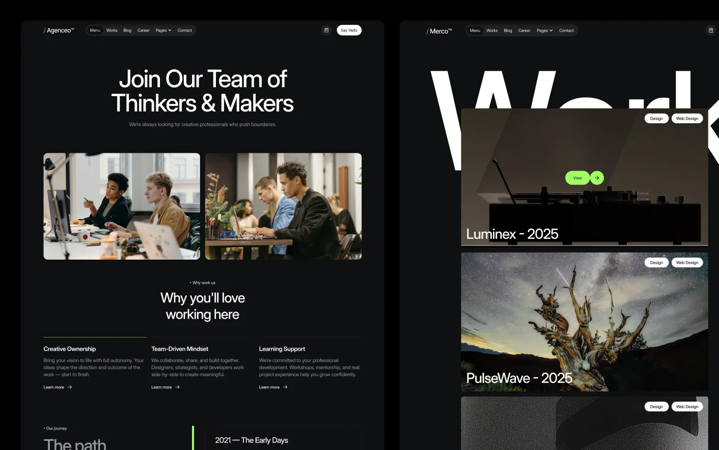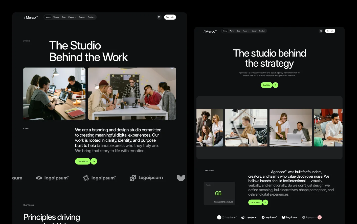 Merco follows proven agency website structures used by successful creative studios. Its balanced layout, clear content sections, and focused service presentation help guide visitors from first impression to inquiry.