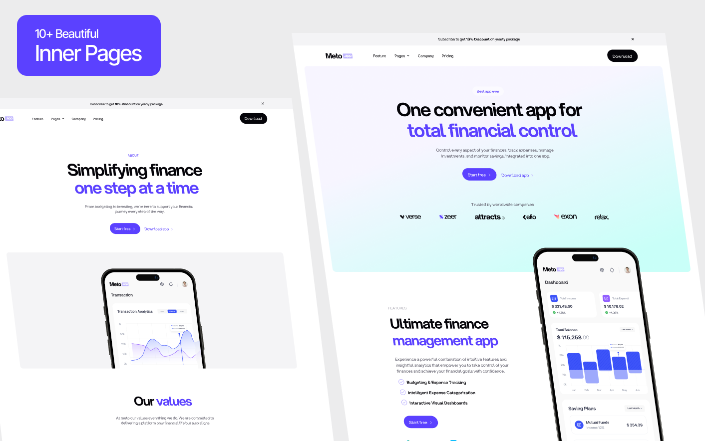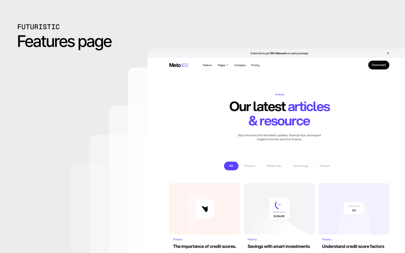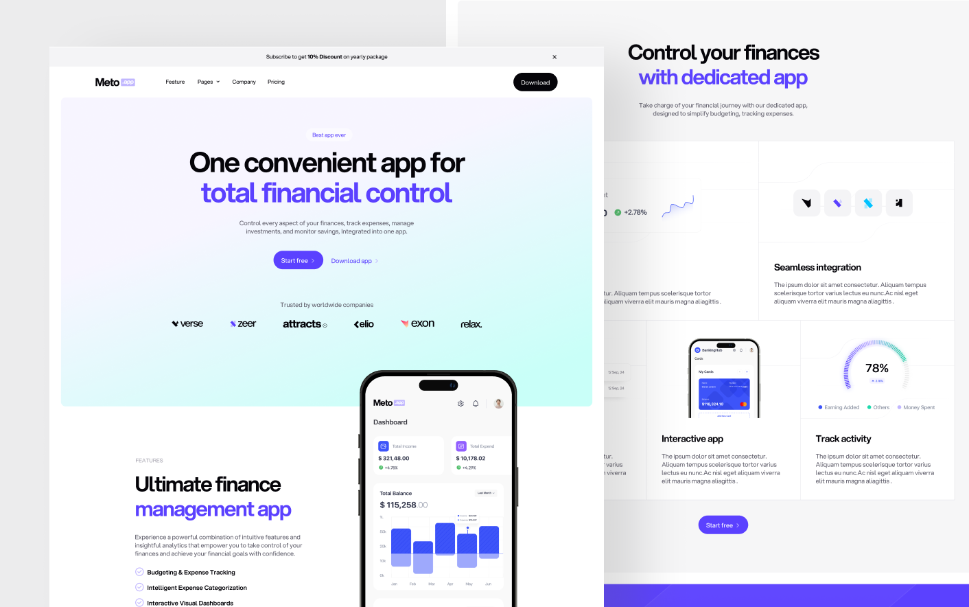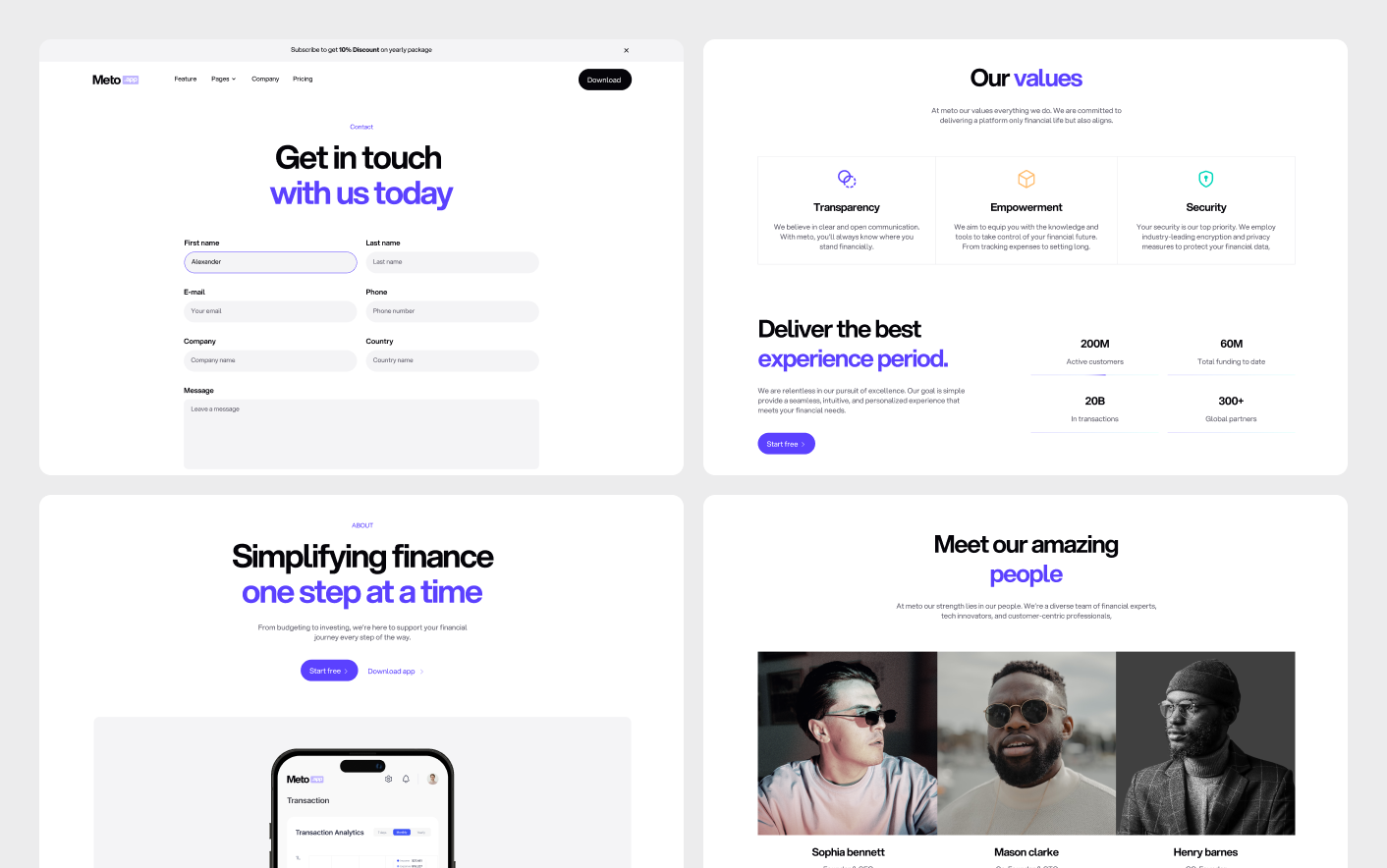 Meto follows modern fintech design practices used by successful banking and financial technology platforms. Its clear structure and focused layouts help financial products present complex services in a simple and understandable way.