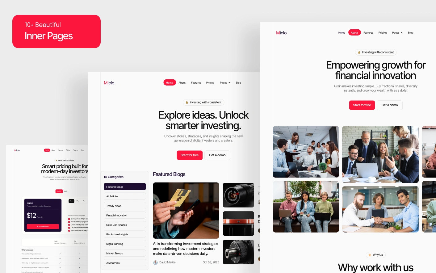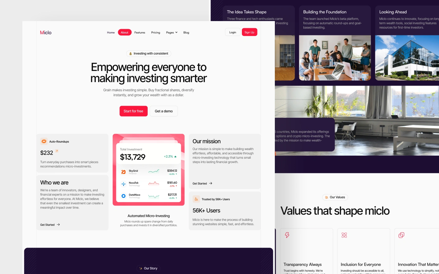 Miclo is a modern investing SaaS Webflow template created for finance startups and digital investment platforms. It provides a clean and professional foundation to present your financial product with clarity and trust.
