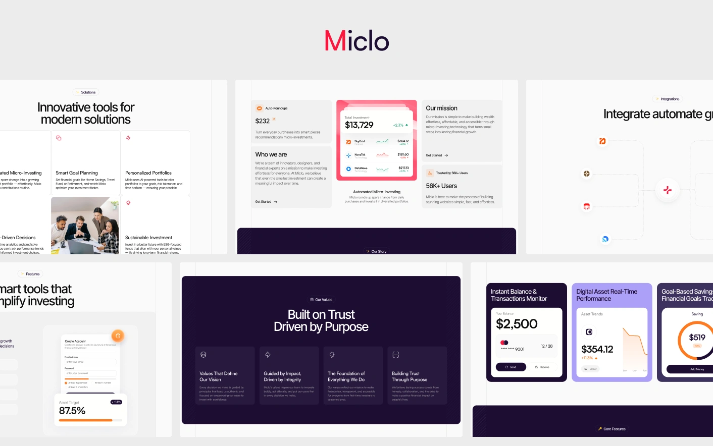 Miclo follows trusted SaaS design principles used by leading financial product websites. Its structured layout, clear content flow, and focused sections guide visitors smoothly from understanding your platform to exploring plans.
