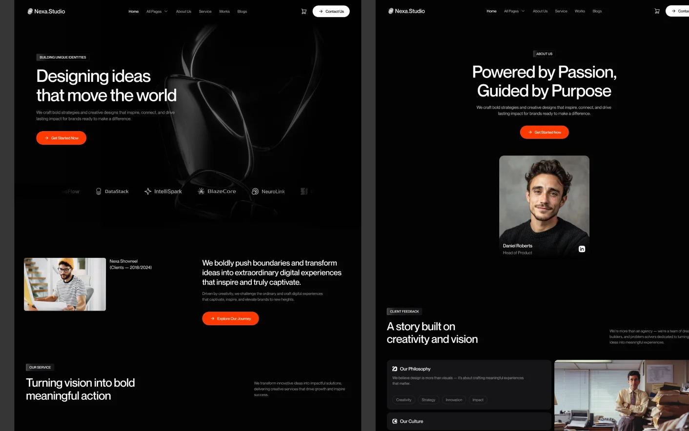 Nexa Studio follows proven agency website structures used by successful creative studios. Its clear layout, structured content flow, and focused sections help guide visitors from first impression to project inquiry.