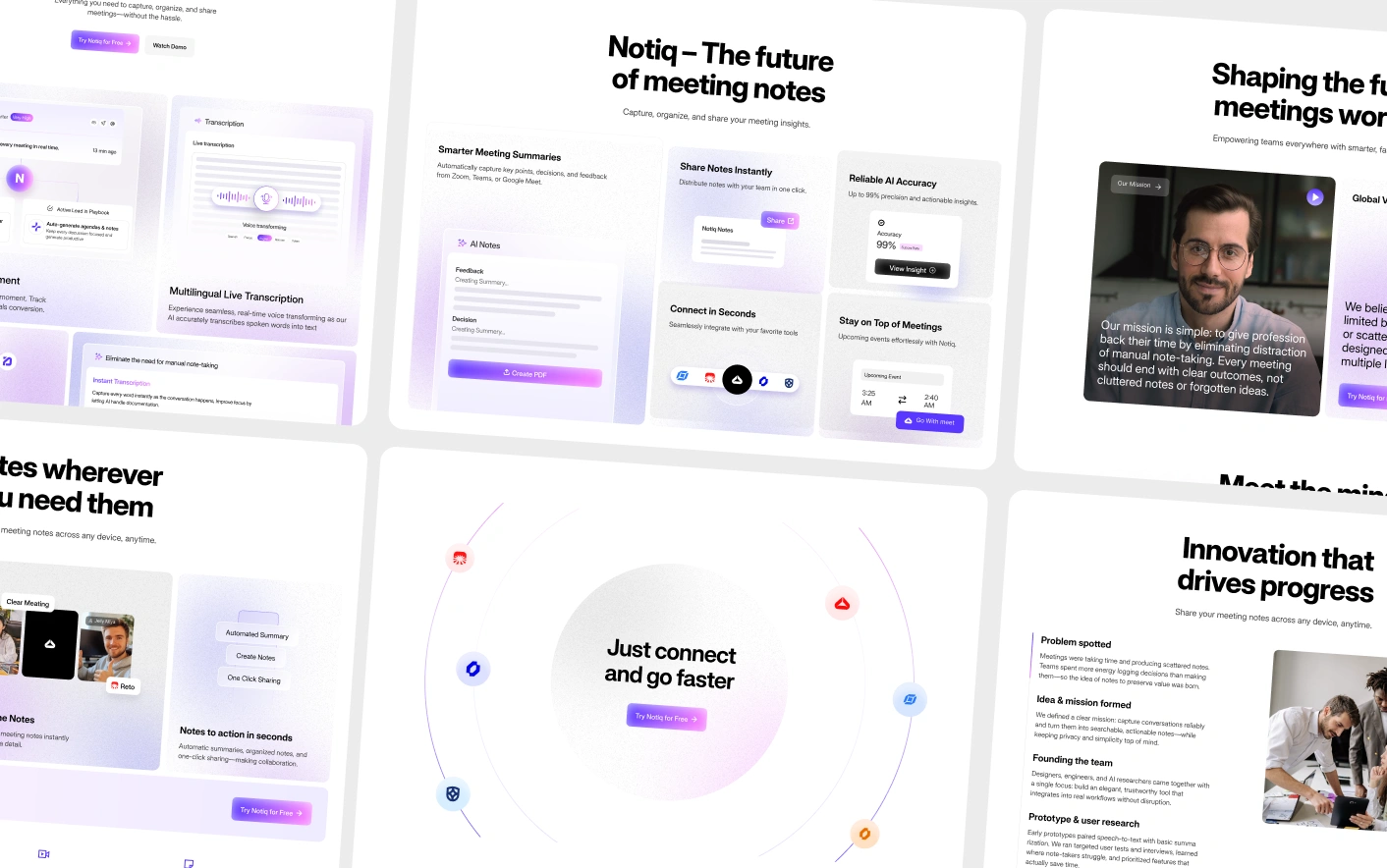 Built to convert, Notiq follows proven SaaS design patterns used by successful AI product websites. Its clean structure and focused sections guide visitors naturally from product overview to sign up.