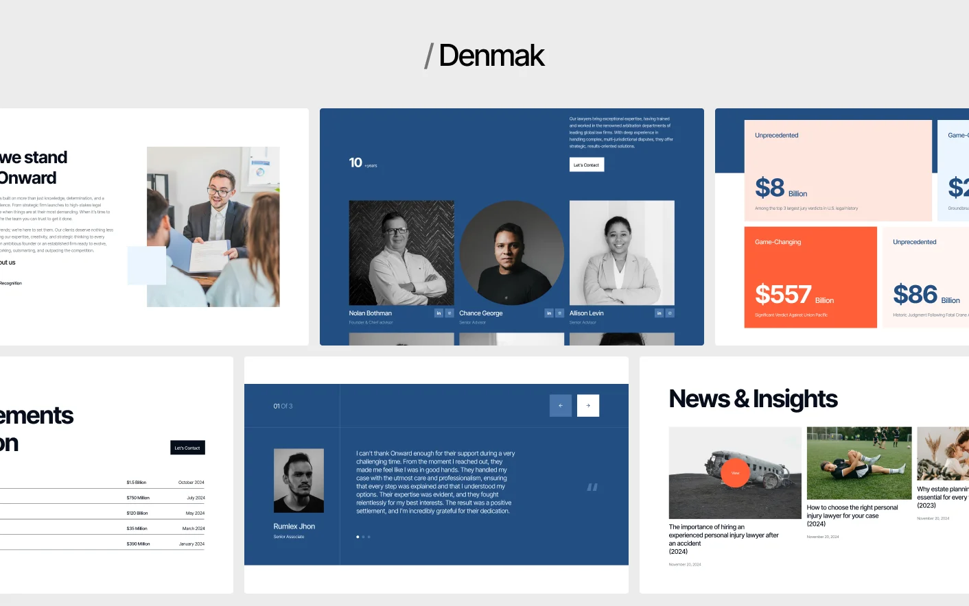 Onward is a professional law firm website template designed for attorneys, legal consultants, and law practices. Built for Webflow CMS, it helps legal teams launch quickly with a structured and trustworthy website design.