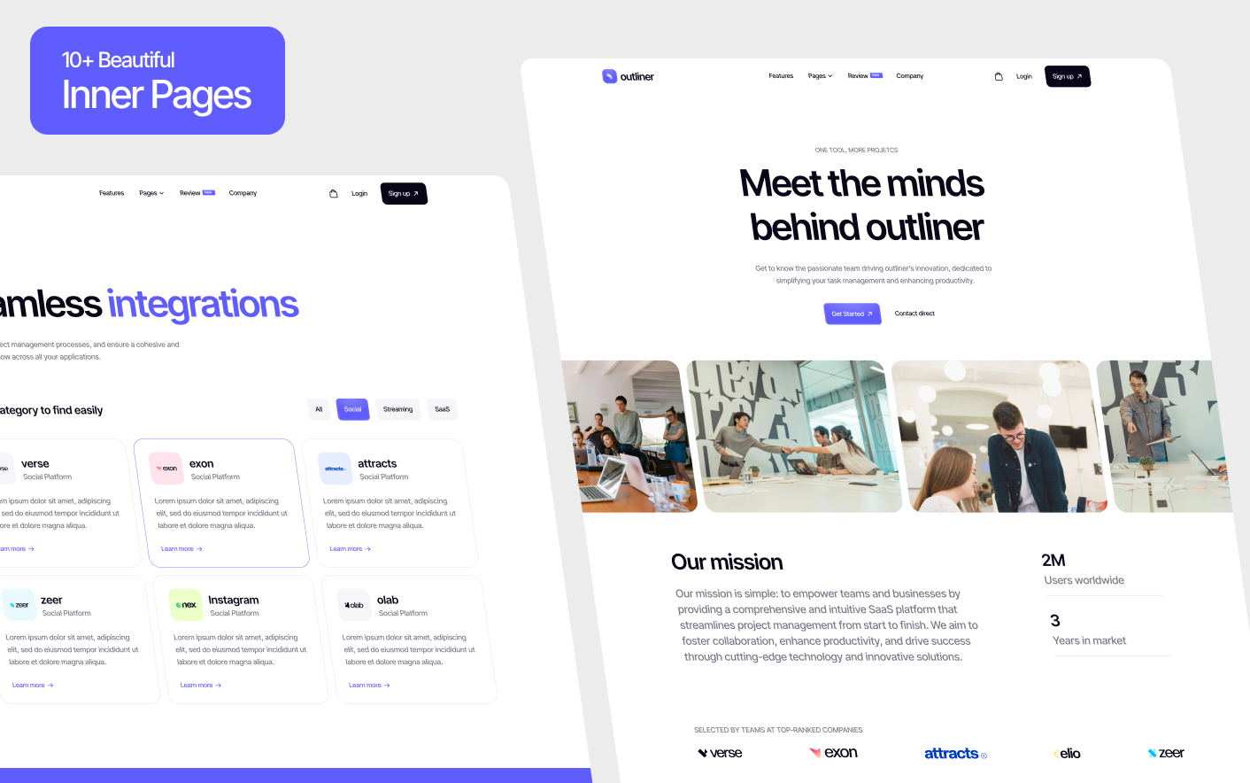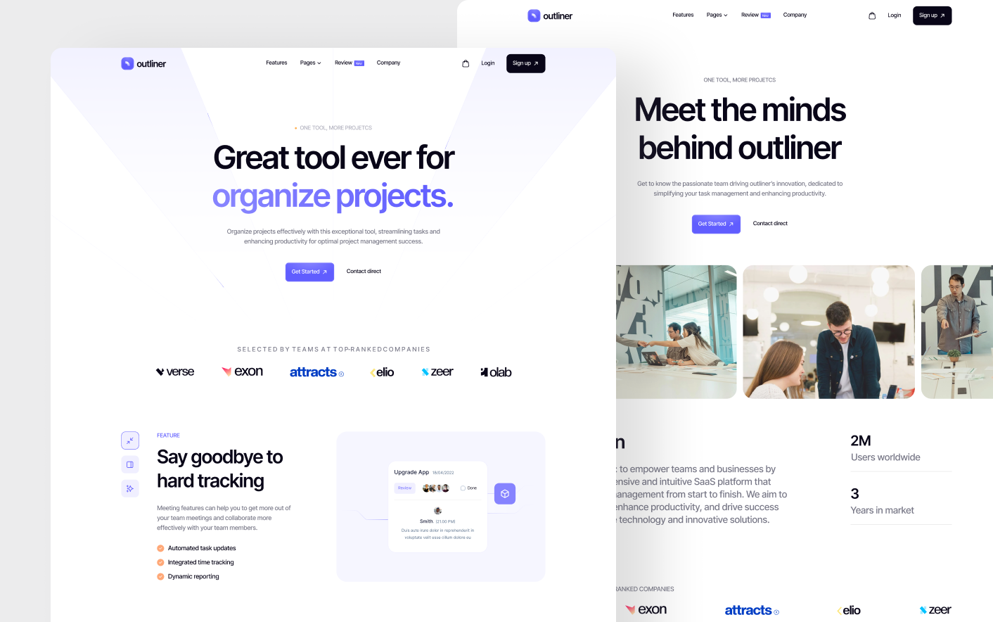 Outliner is a modern project management SaaS website template built for startups and software teams creating productivity and workflow tools. It provides a clean, structured foundation to present your platform with clarity and confidence.