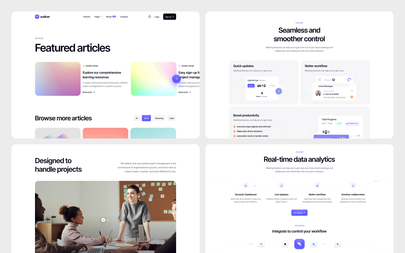 Outliner is a modern project management SaaS website template designed for workflow platforms and productivity tools. Built for Webflow CMS, it helps software startups and product teams launch quickly with a clean, structured, and conversion focused website design.