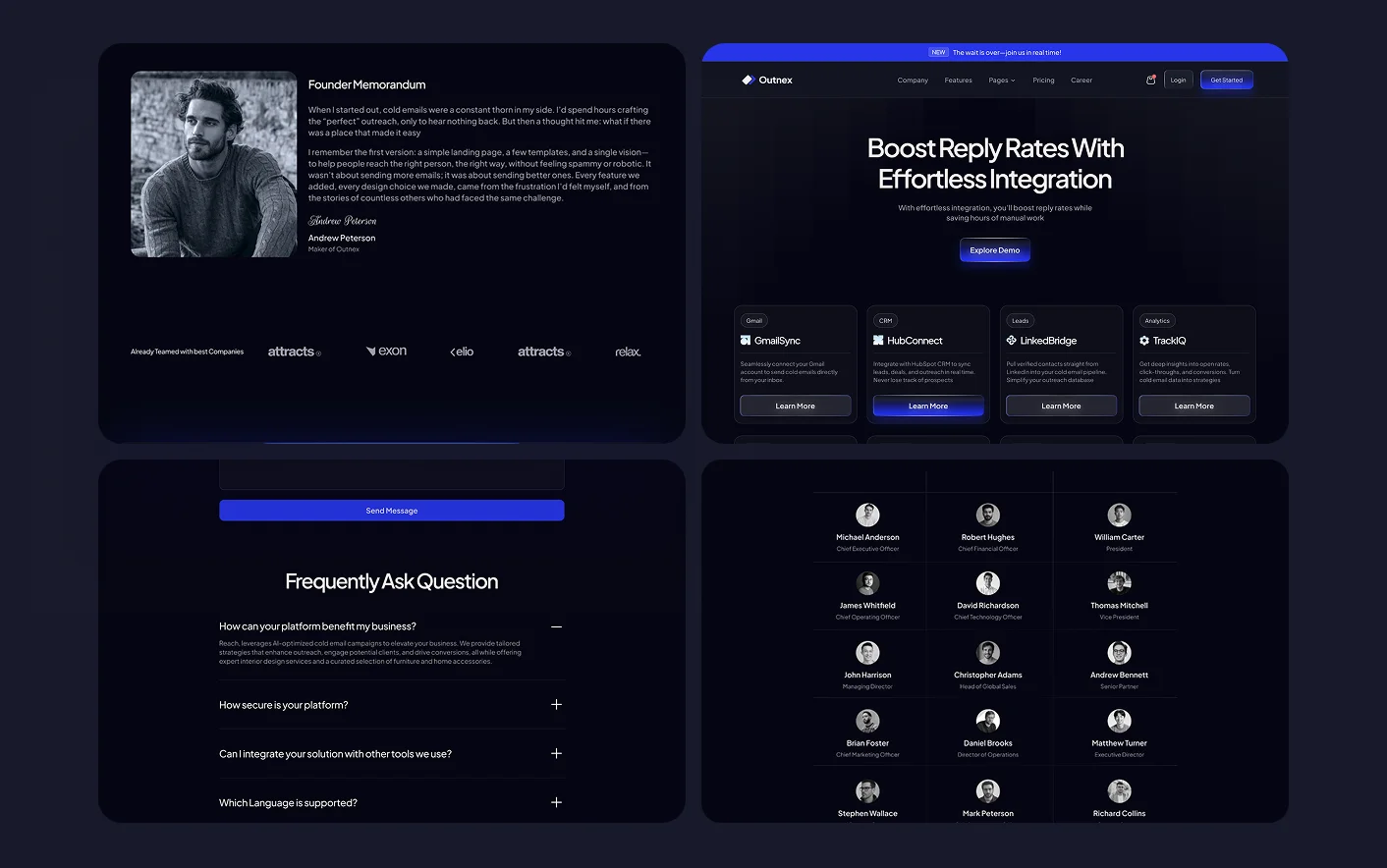 Outnex follows proven SaaS website structures used by high performing software and AI startups. Its clean layout, logical content flow, and focused sections guide visitors step by step from product discovery to sign up.