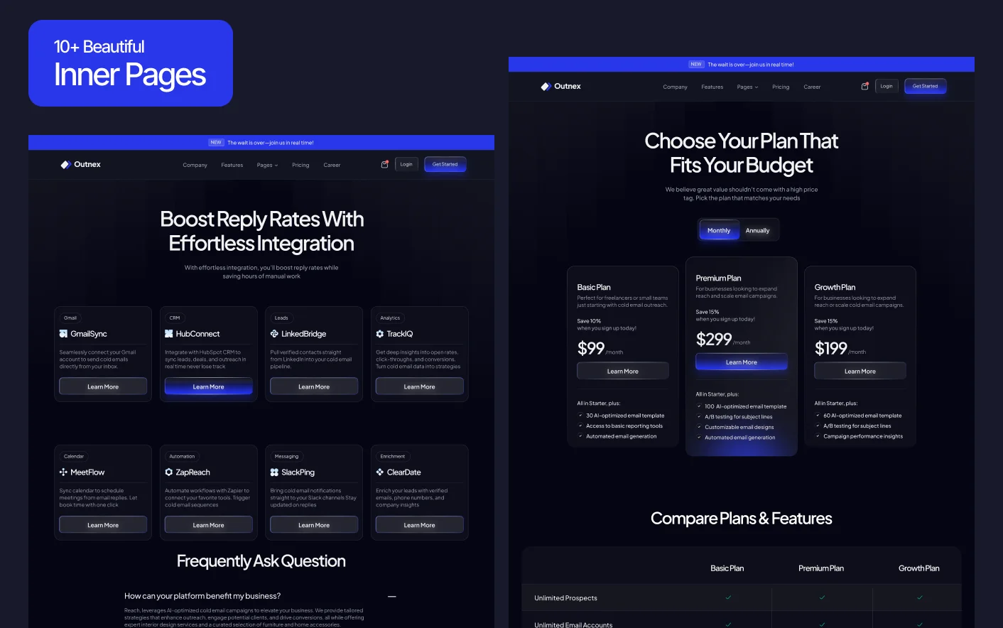 Outnex is a modern AI SaaS website template built for software startups, email marketing tools, and AI powered cold outreach platforms. It provides a clean and professional foundation to present your product with clarity and confidence.