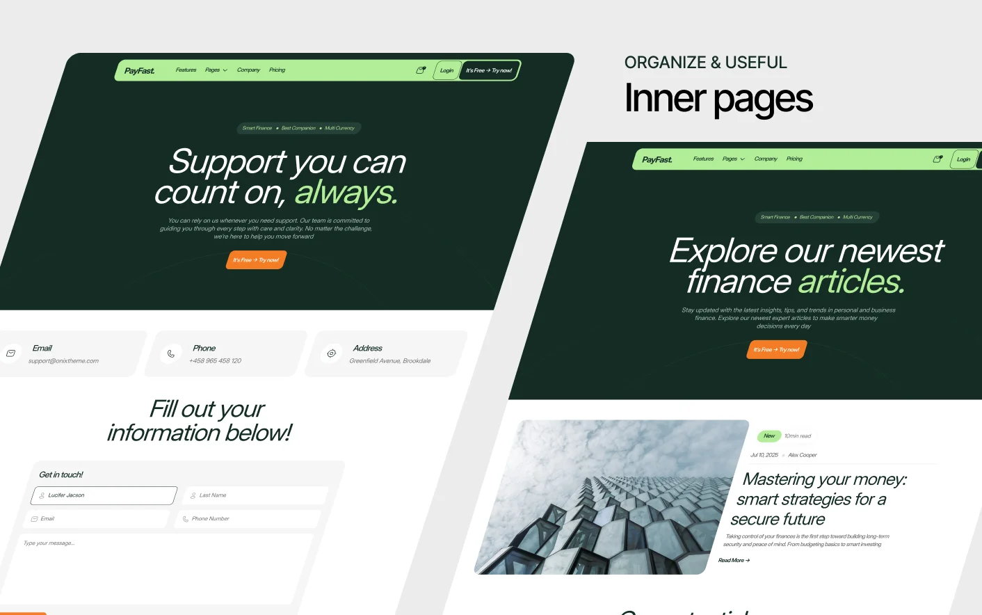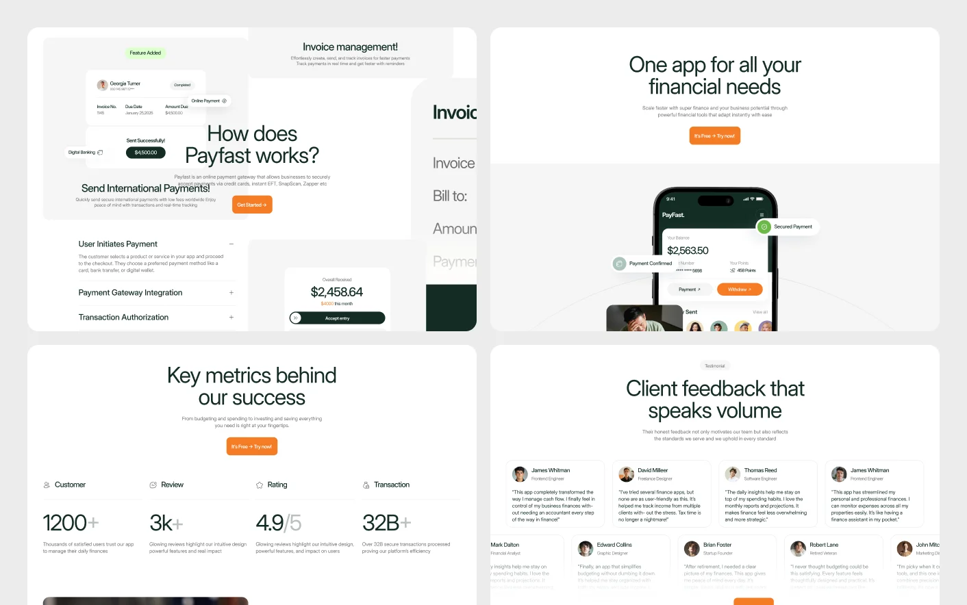 PayFast follows proven finance and SaaS design structures used by trusted payment and investment platforms. Its clear layout, guided content flow, and focused sections help users understand your services without confusion.