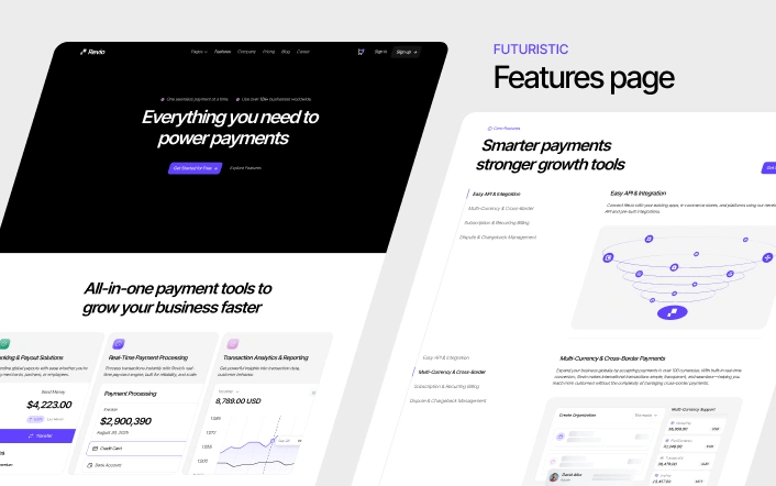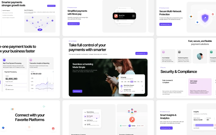 Revio Pay is a modern fintech platform built for Fintech SaaS website templates, startups, SaaS platforms, financial companies, and online banking solutions. It provides a secure and reliable foundation to manage payments, automate transactions, and deliver smooth financial experiences to customers.