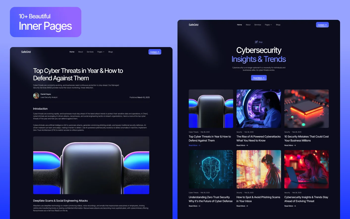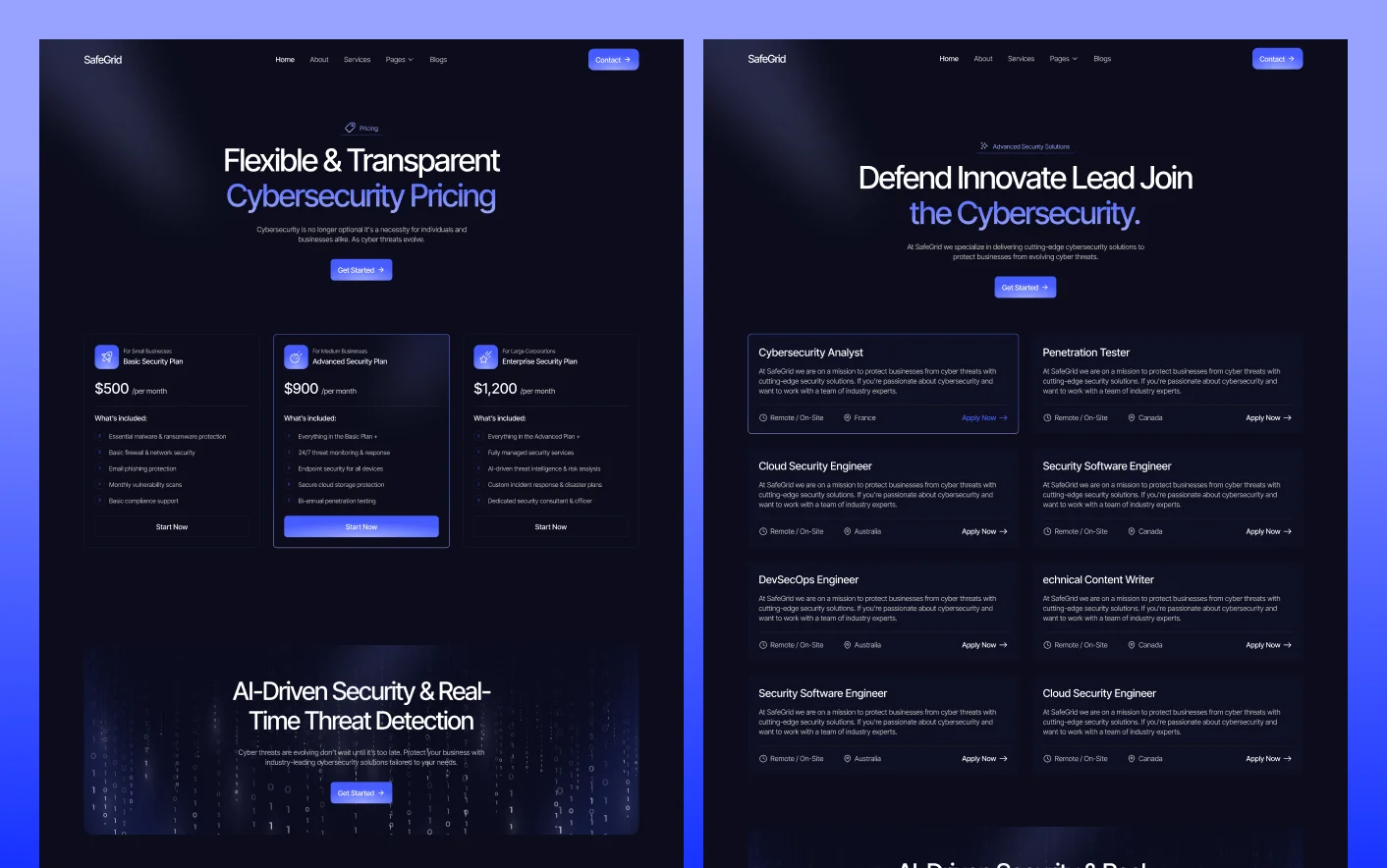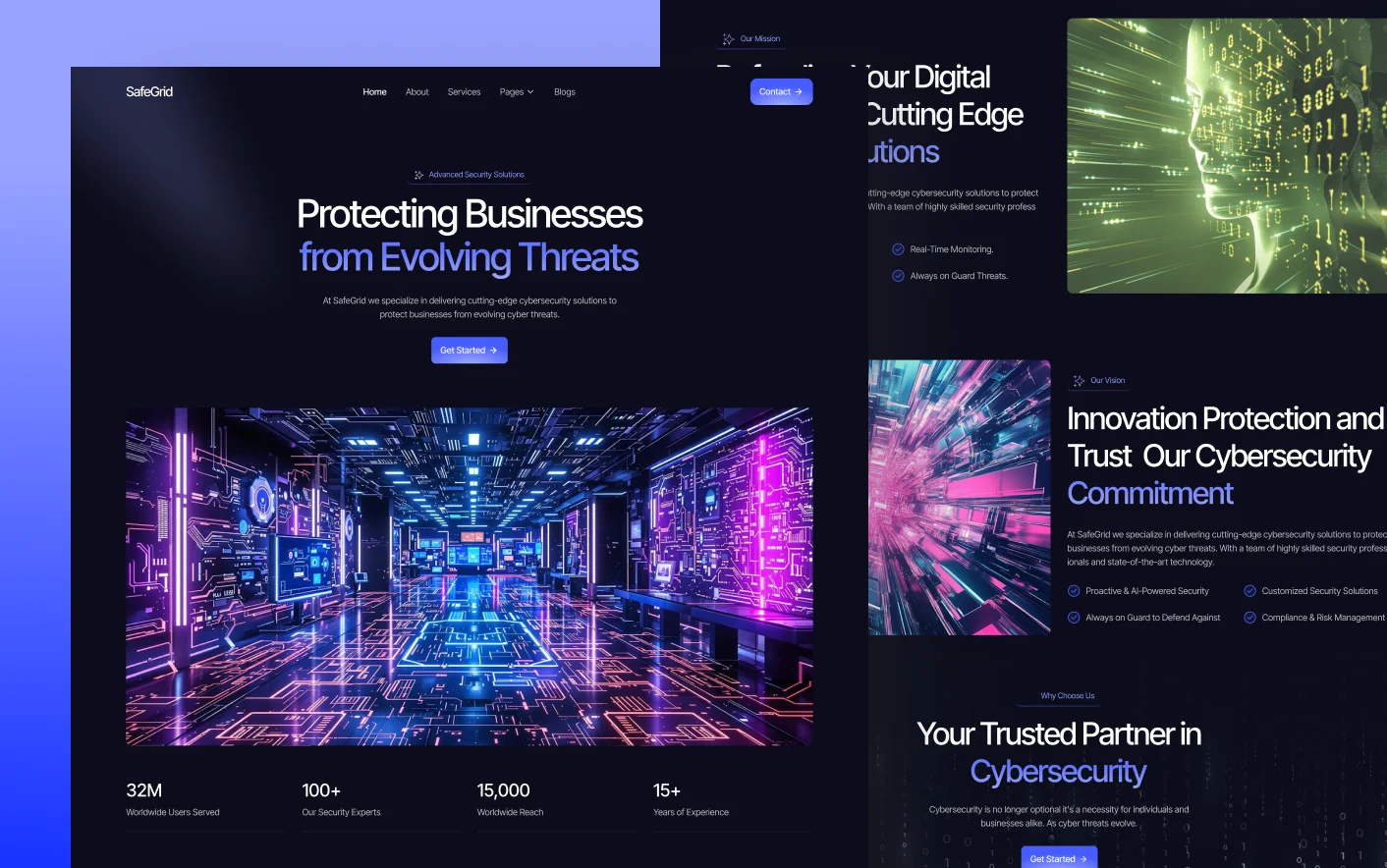 SafeGrid is a modern cyber security website template created for security firms, consulting companies, and technology service providers. It offers a clean and professional structure to present security services, expertise, and solutions with clarity and confidence.
