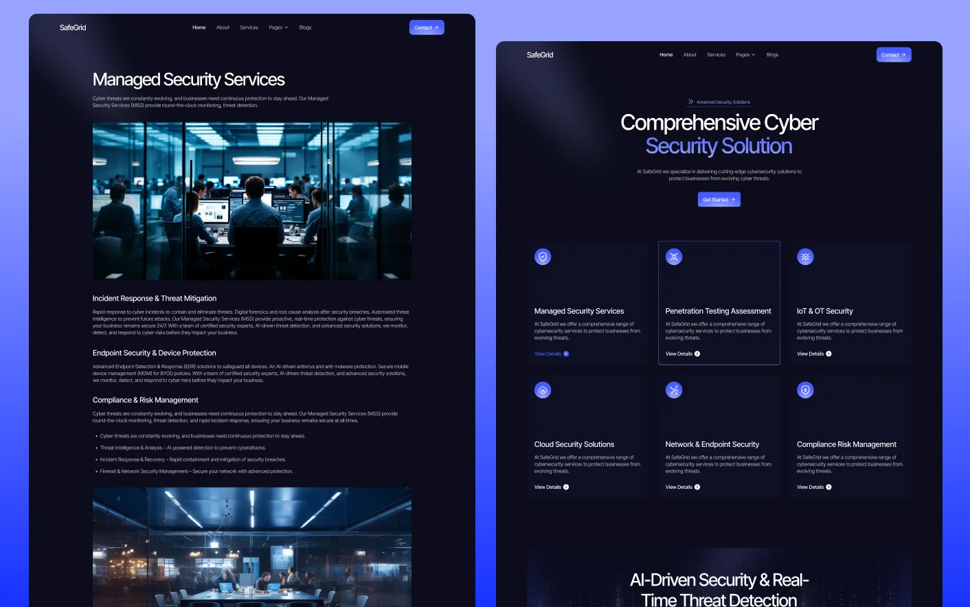 SafeGrid follows modern website patterns used by successful cyber security companies and technology service providers. Its clear layout, structured service sections, and focused messaging guide visitors smoothly from understanding your expertise to requesting your services.