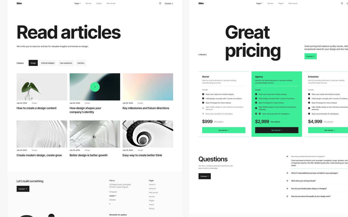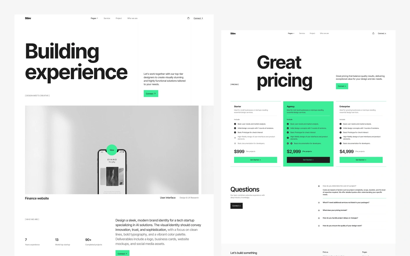 Stire Lite follows proven agency website structures used by successful studios and creative teams. Its balanced layout, clear content flow, and focused sections help visitors explore your services and projects without confusion.