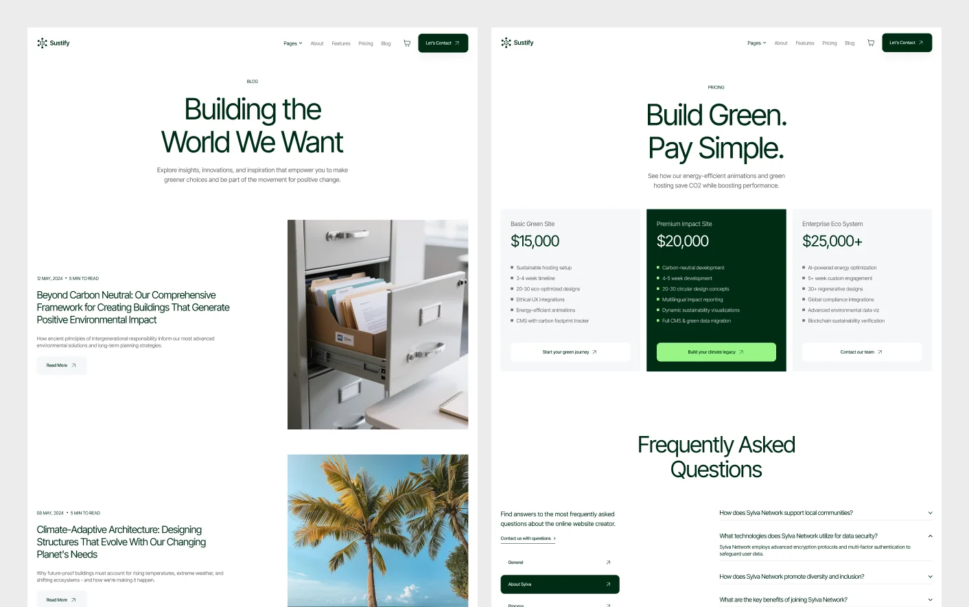 Sustify also includes essential utility pages such as 404 Error, Coming Soon, and Privacy Policy to ensure your website remains complete and professional.