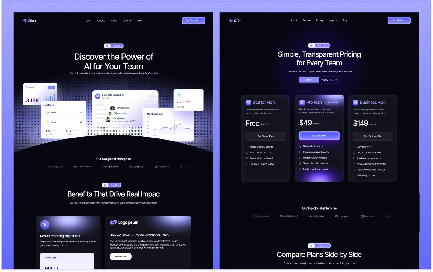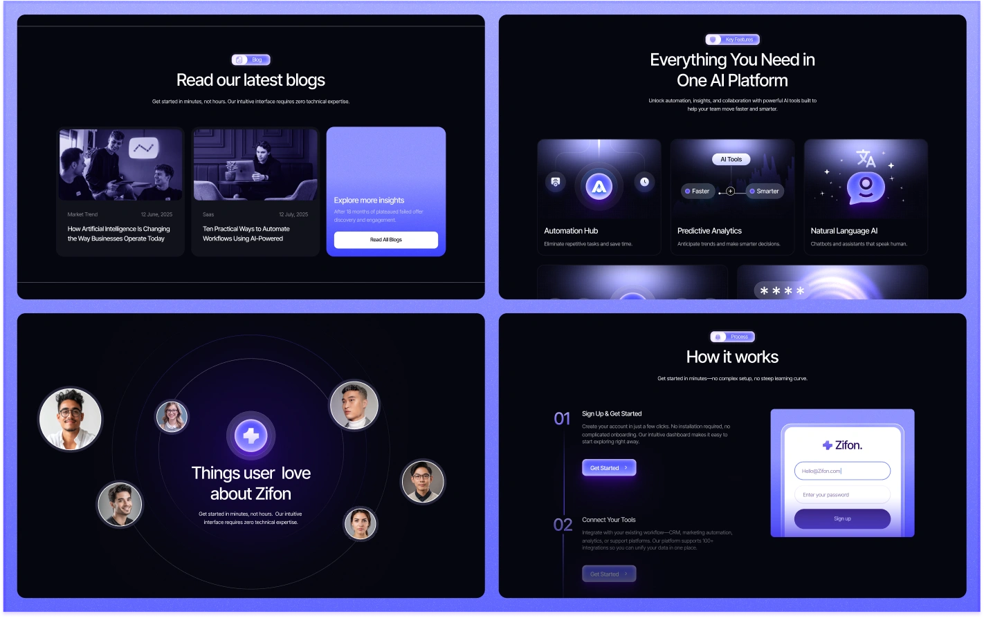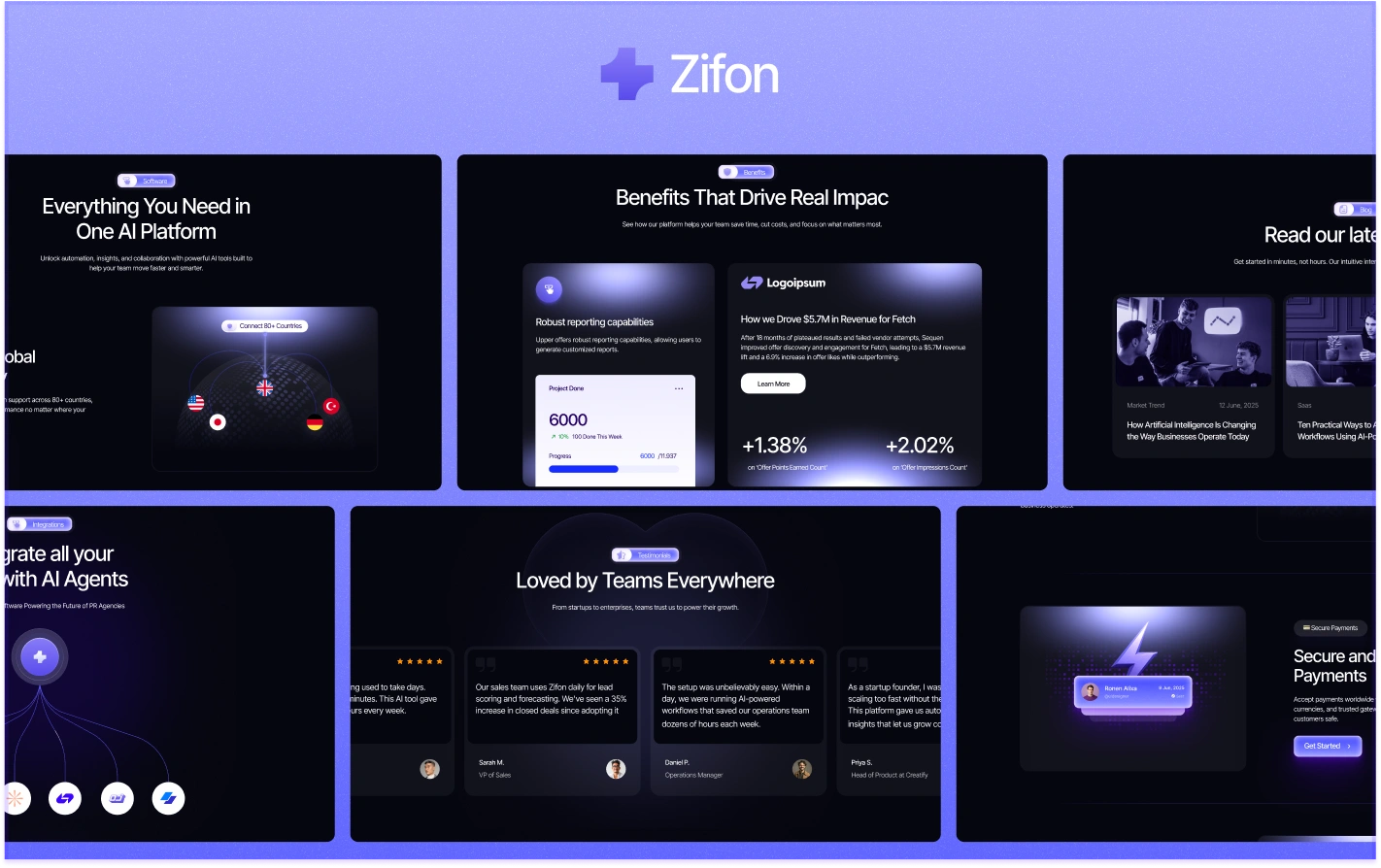 Zifon is a modern AI SaaS website template designed for AI tools and software startups. Built exclusively for Webflow CMS, it helps founders and product teams launch quickly with a clean, structured, and conversion-driven website foundation.